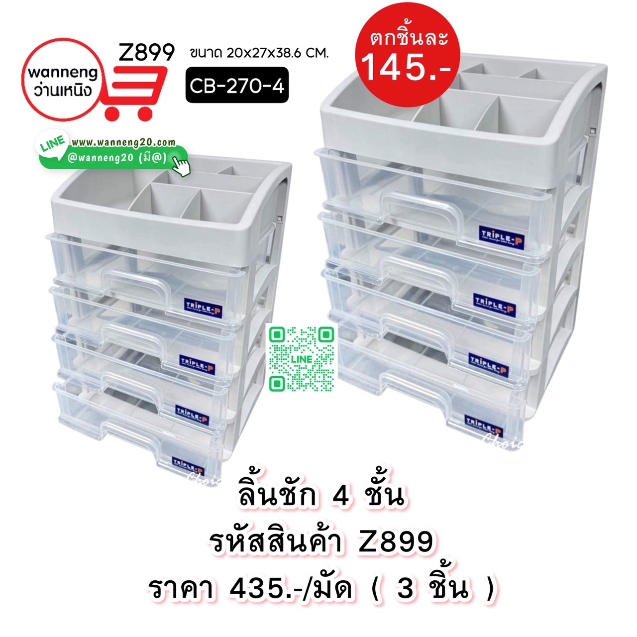 Z899 ลิ้นชัก 4 ชั้น CB270-4 1 มัด 3 ชิ้น