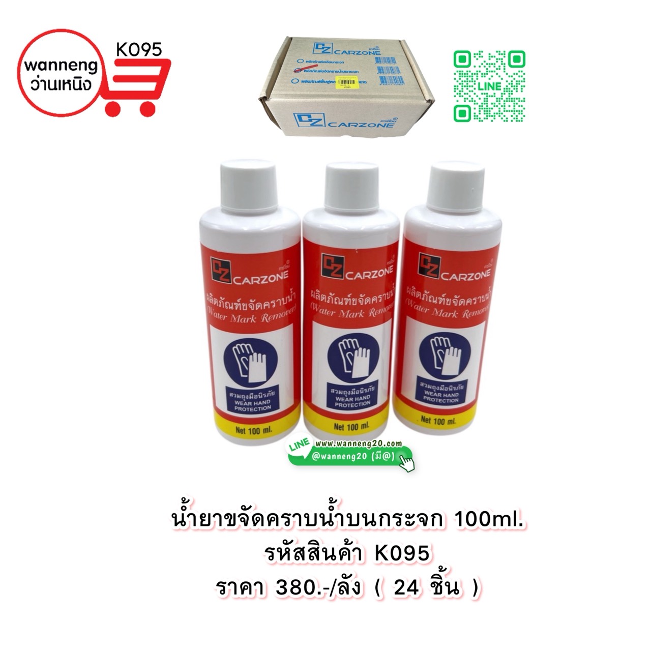 K095 น้ำยาขจัดคราบน้ำบนกระจก 100ml. 1 ลัง 24 ชิ้น