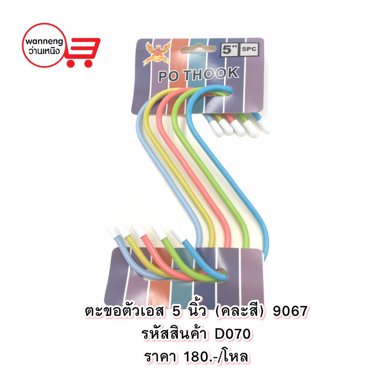 D070 ตะขอตัวเอส 5 นิ้ว (คละสี) 9067 1 โหล
