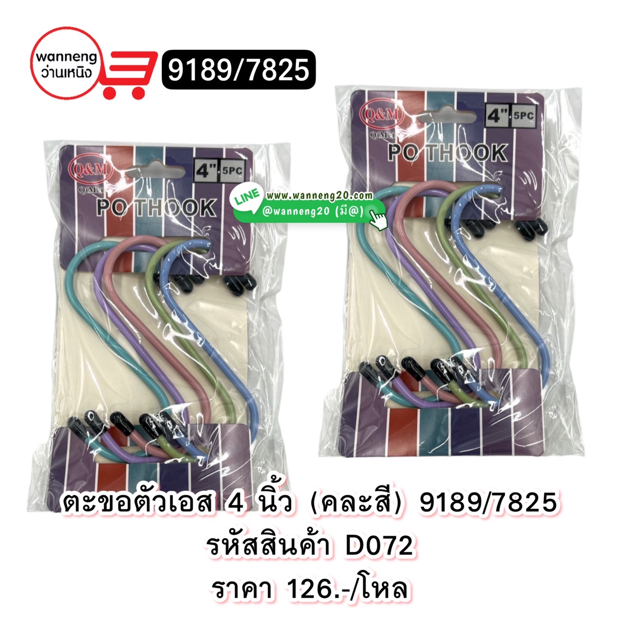 D072 ตะขอตัวเอส 4 นิ้ว (คละสี) 9189 1 โหล