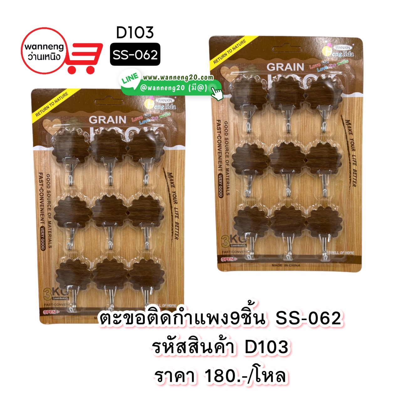 D103 ตะขอติดกำแพง 9 ชิ้น SS-062 1 โหล