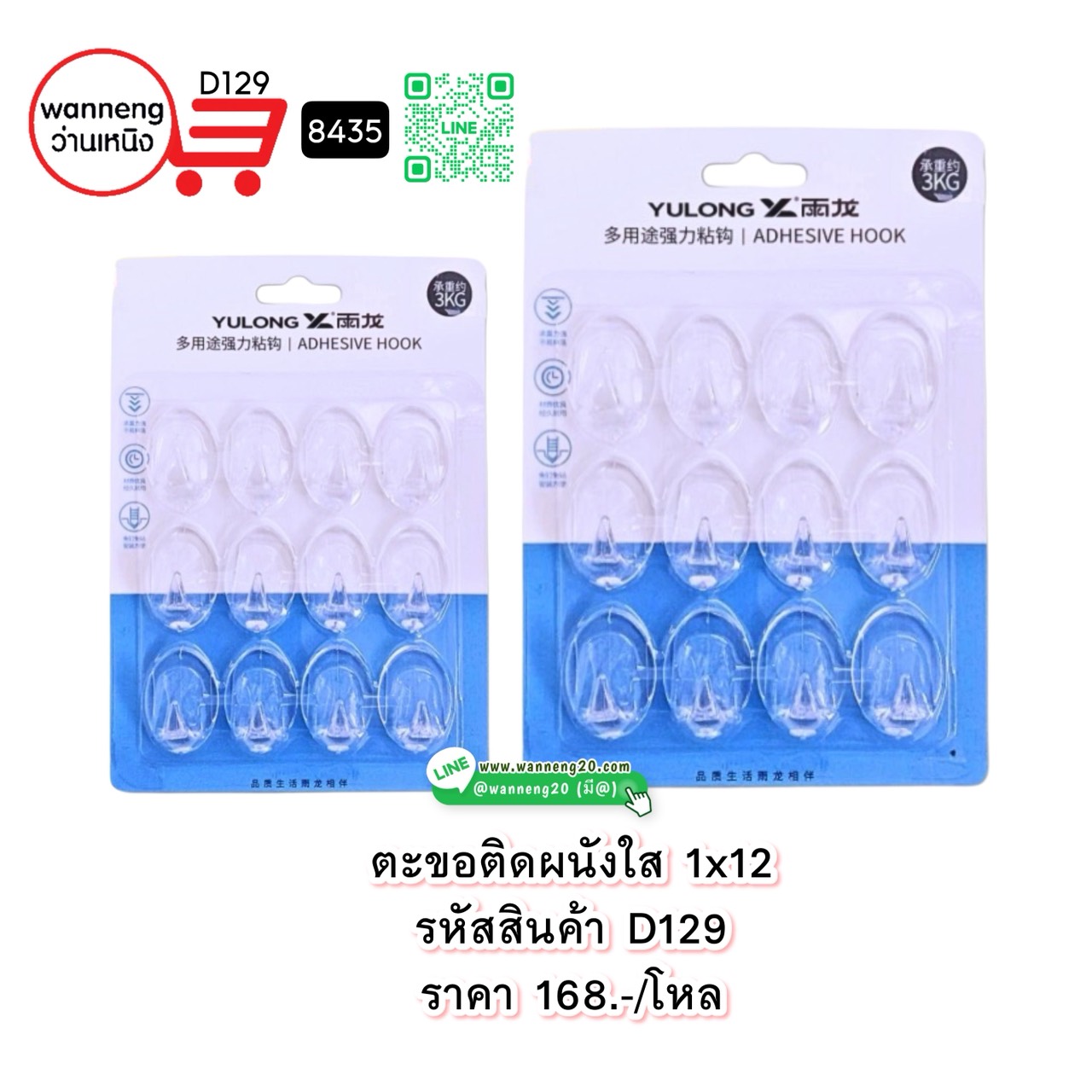 D129 ตะขอติดผนังใส 1x12 8435 1 โหล