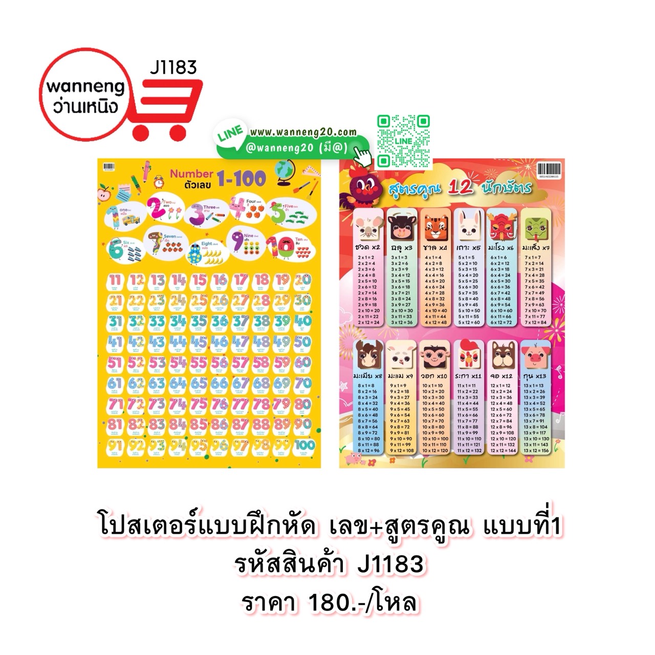 J1183 โปสเตอร์แบบฝึกหัด เลข+สูตรคูณ แบบที่ 1 1 โหล