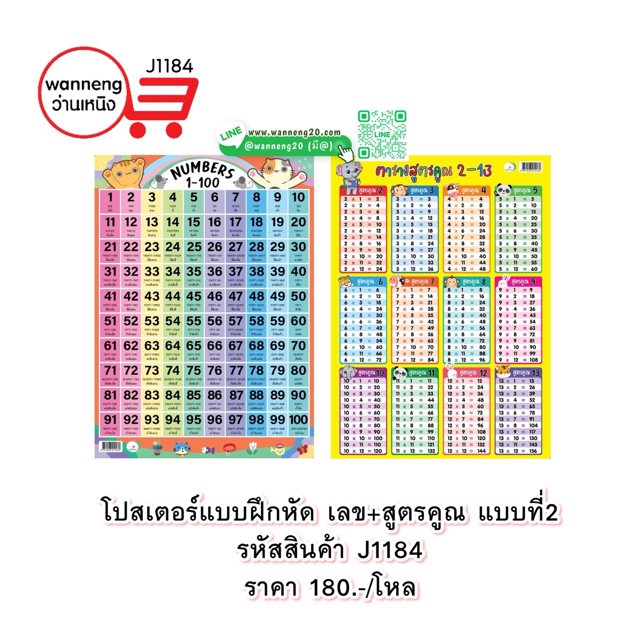 J1184 โปสเตอร์แบบฝึกหัด เลข+สูตรคูณ แบบที่ 2 1 โหล