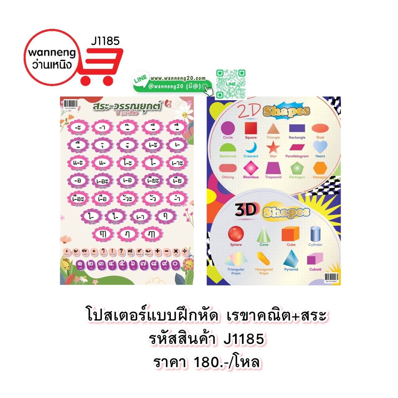 J1185 โปสเตอร์แบบฝึกหัด เรขาคณิต+สระ 1 โหล