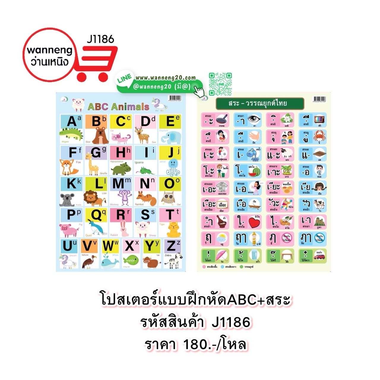 J1186 โปสเตอร์แบบฝึกหัด ABC+สระ 1 โหล