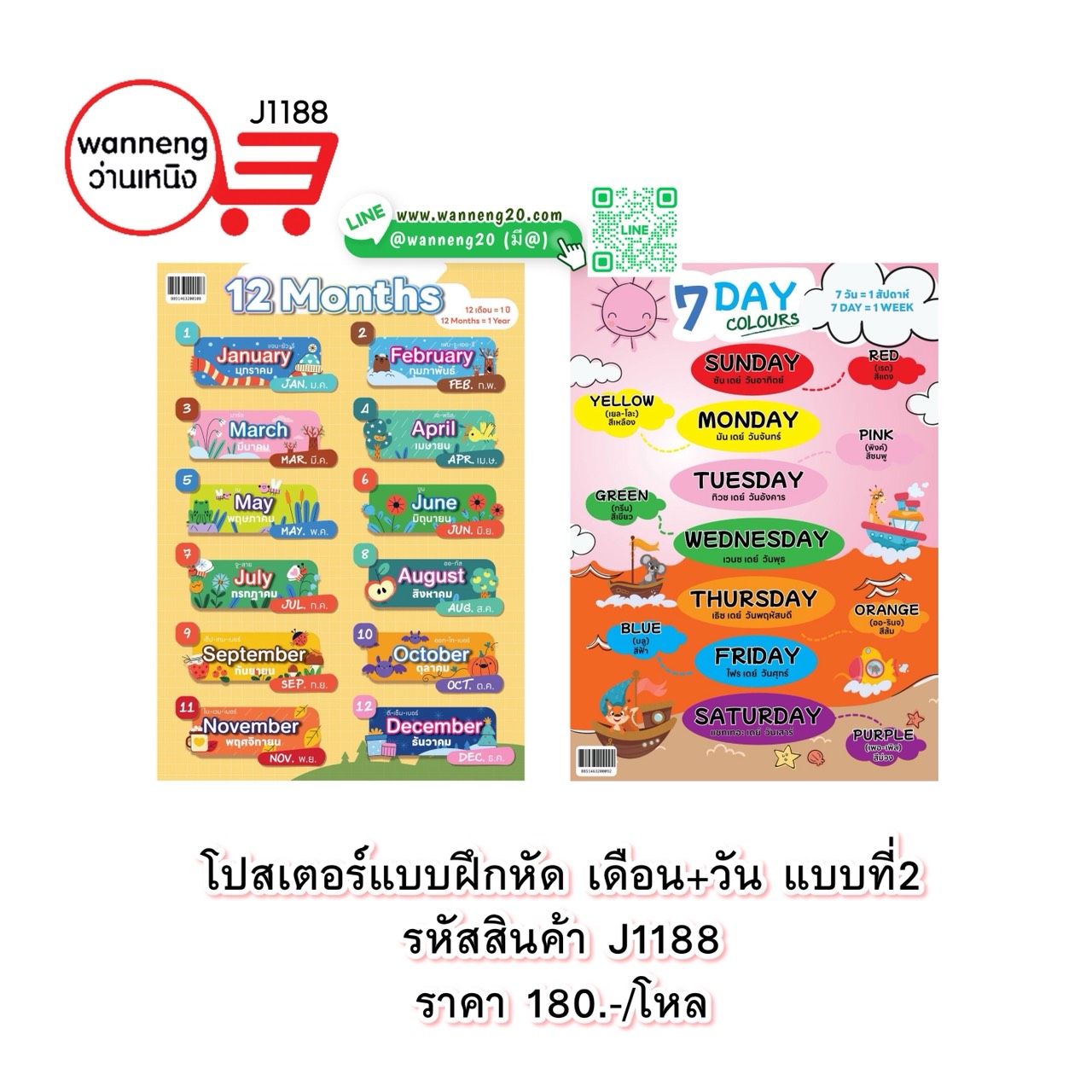 J1188 โปสเตอร์แบบฝึกหัด เดือน+วัน แบบที่ 2 1 โหล
