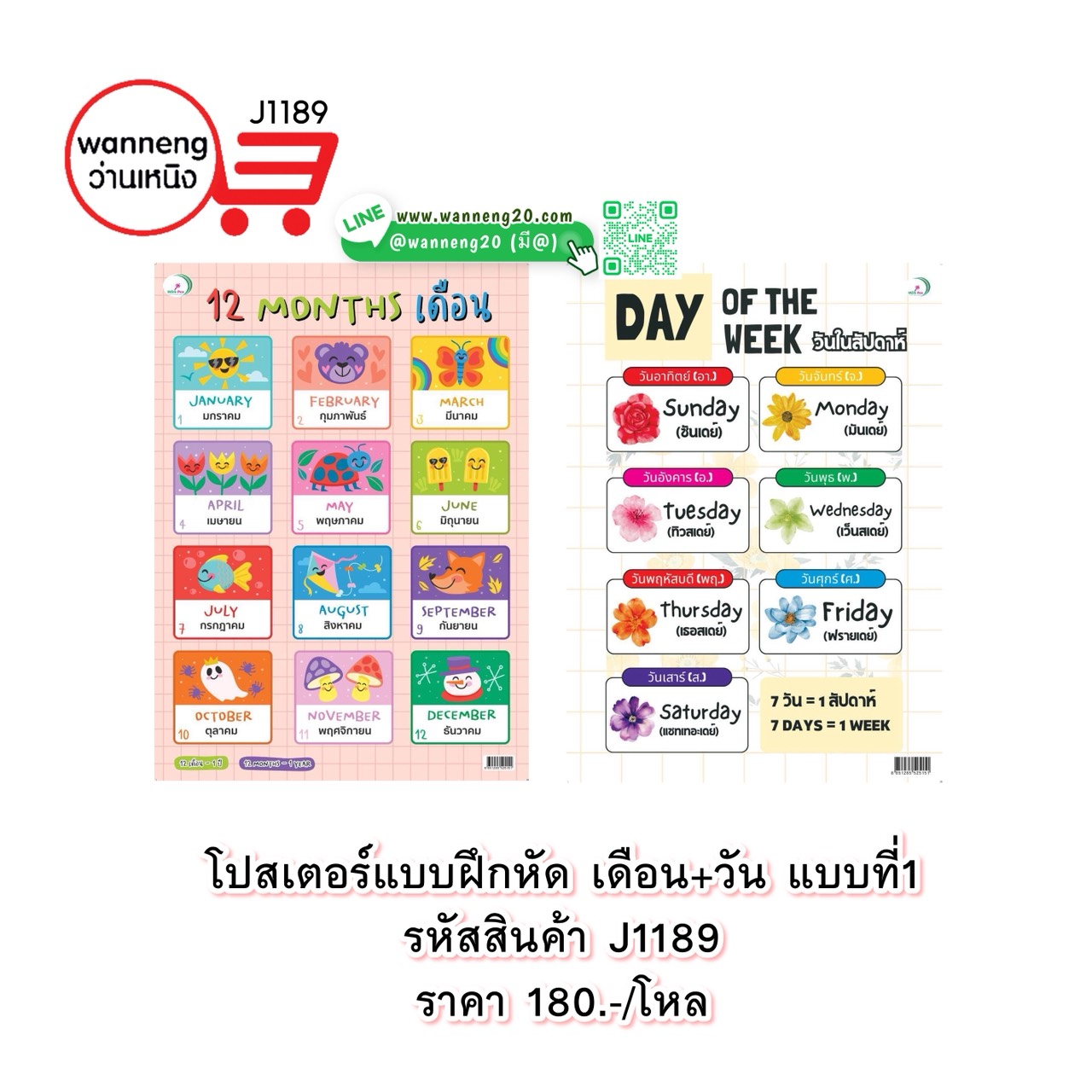 J1189 โปสเตอร์แบบฝึกหัด เดือน+วัน แบบที่ 1 1 โหล