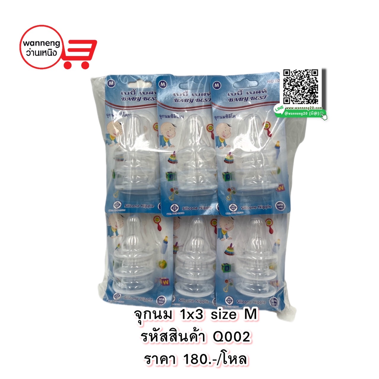 Q002 จุกนม 1x3 size M 1 โหล