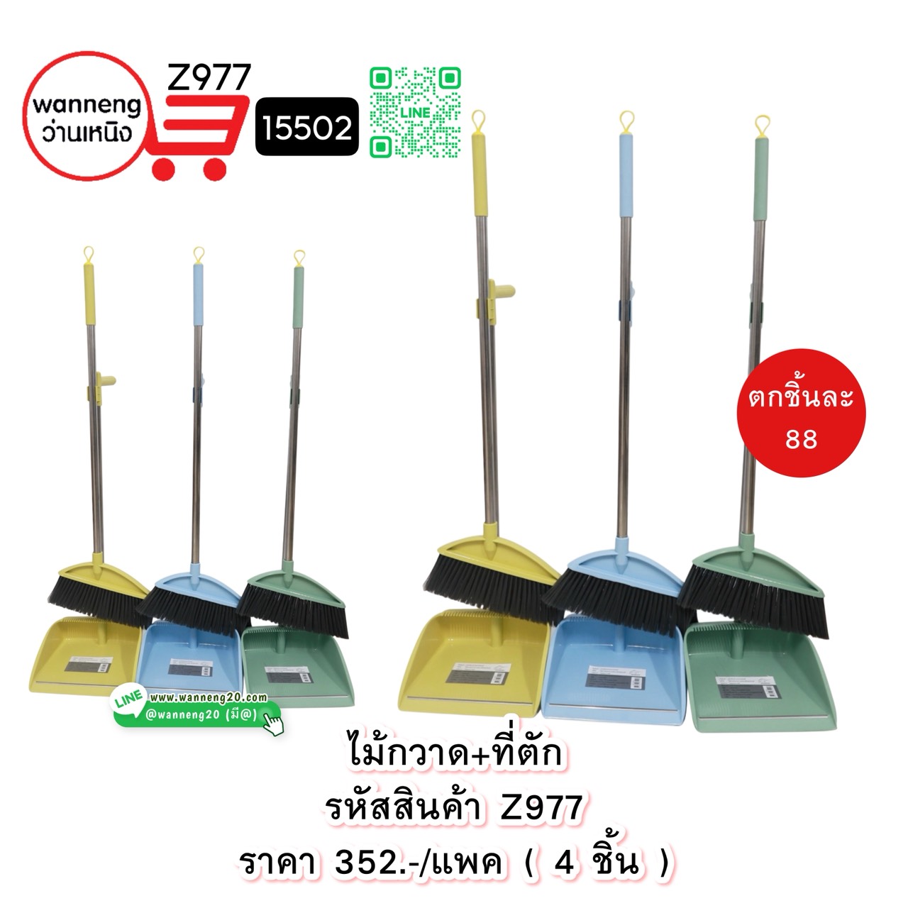 Z977 ไม้กวาด+ที่ตัก 15502 1 แพค 4 ชิ้น